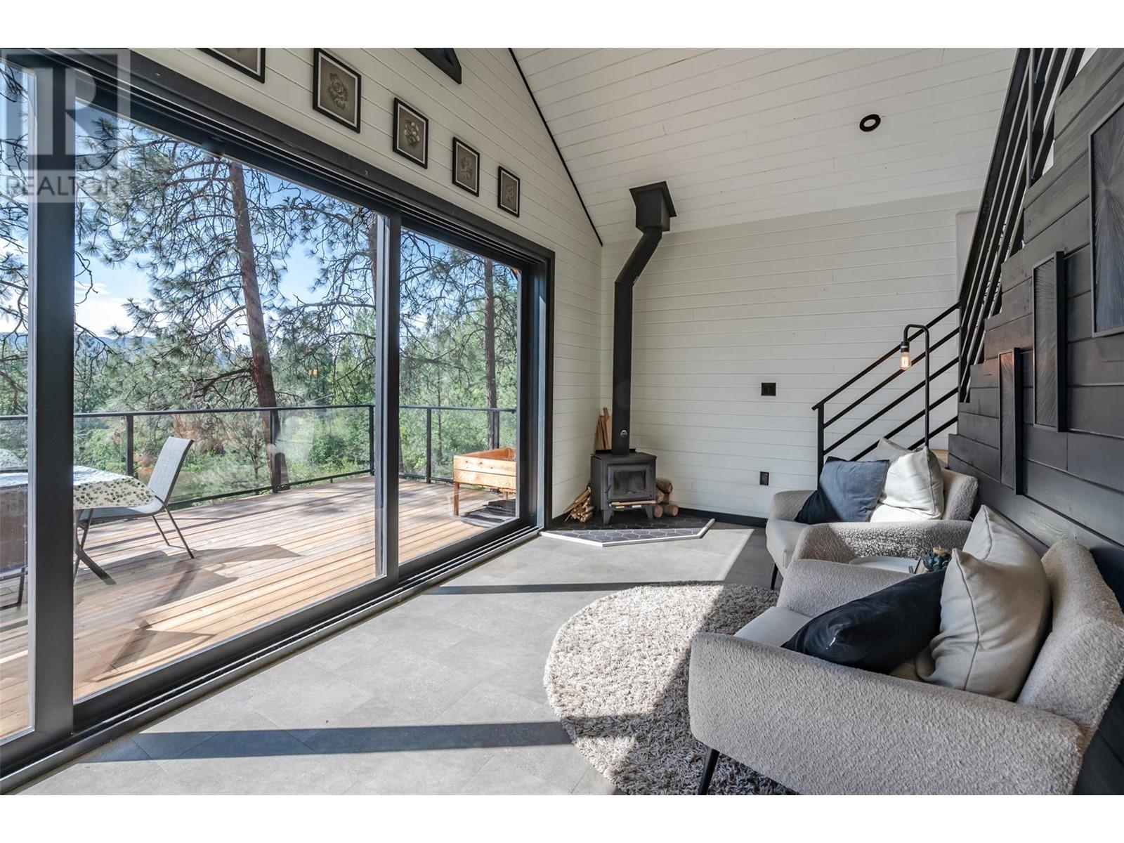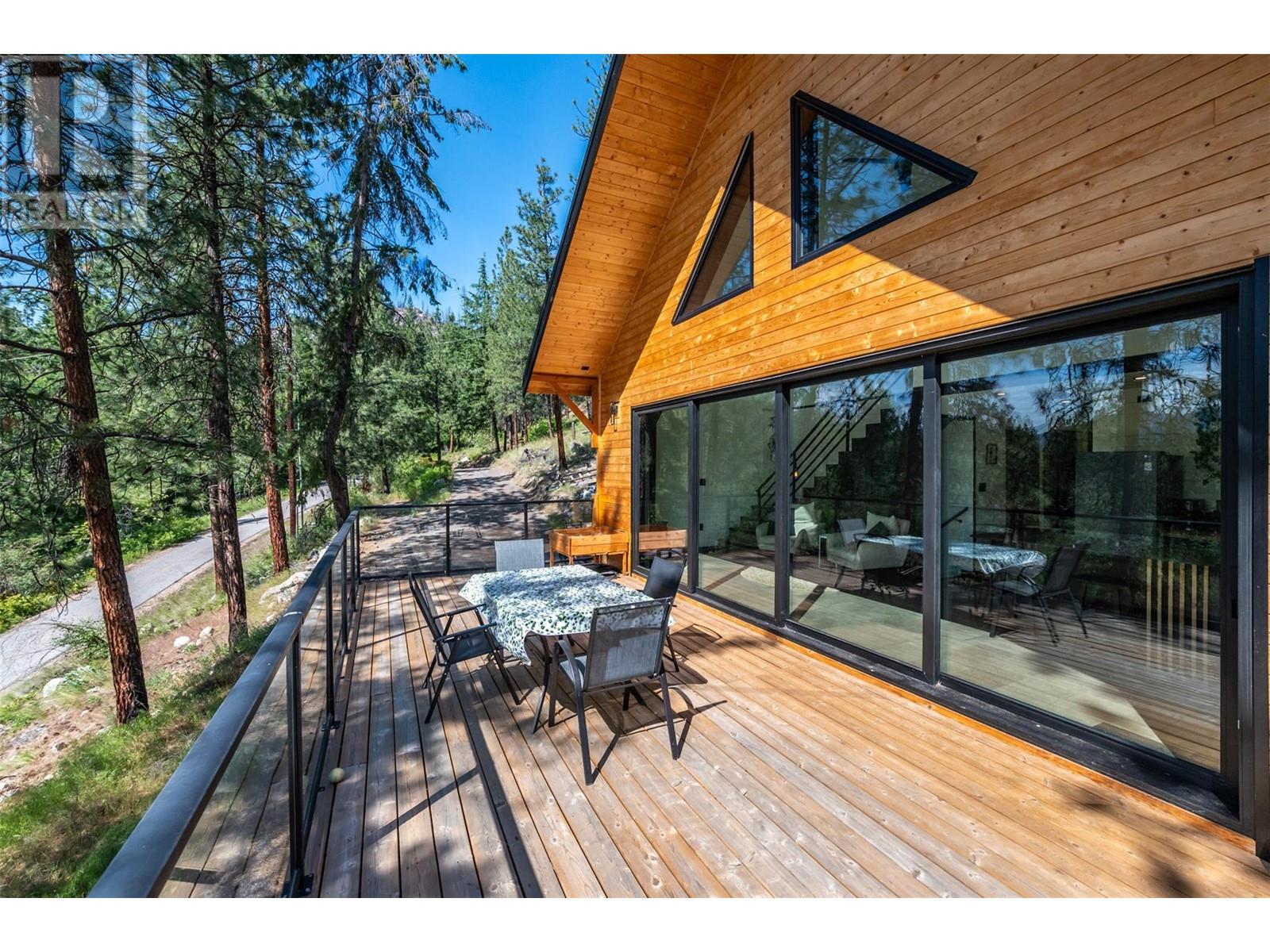 Welcome to this gorgeous newly built home nestled amongst Okanagan pines and natures beauty. This home is only a 15 minute drive to Penticton and 5 minutes to OK Falls. Recently constructed in 2020, this 1736 sq.ft. home is situated on a secluded half-acre parcel in Golden Hills, one of Canada's most unique bare land strata, boasting approximately 160 acres of shared land to explore and enjoy. The home is a captivating blend of natural charm and modern sophistication, featuring a designer kitchen with solid surface countertops, a spa like bathroom with a steam shower, smart appliances, high end windows, and a fresh air exchange system for optimal comfort. The thoughtfully designed layout seamlessly integrates the natural surroundings, with a 20 ft tinted folding glass wall that opens out from the kitchen and dining to a spacious 28x12 deck with panoramic forest and mountain views for the ultimate outdoor living experience. The lower level of the house is primed for an entertainment/living room and a den for guests. This home comes with an amazing water filtration system for the absolute best quality drinking and bathing water. The installed system is an approximate cost of $25,000. Covered parking and ample surrounding land complete this truly one of a kind property. (id:4069)