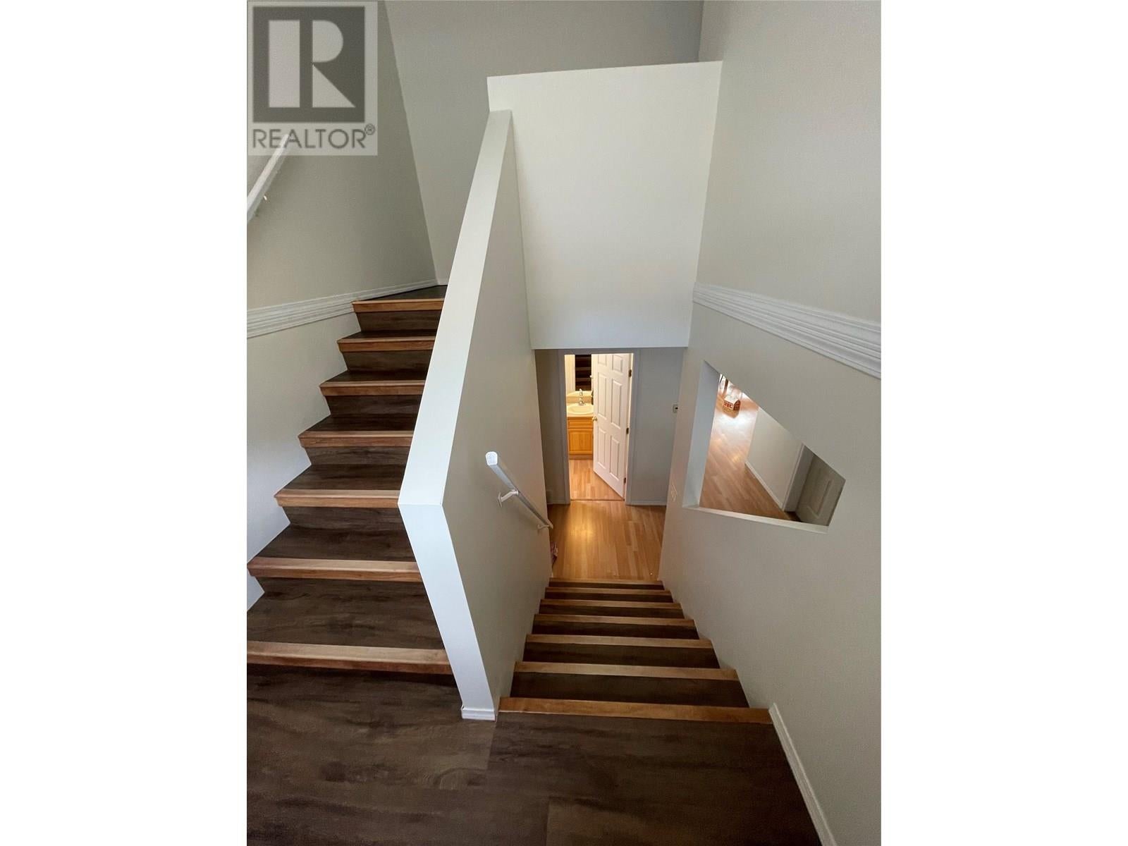 Beautiful, bright three-bedroom, 3 bathroom end-unit townhome just a short walk to downtown Summerland! Park in your single car garage or outside in your stall. On the main floor enjoy the open plan living space; kitchen with stainless appliances and large island, good-sized dining area and living room with sliders onto the deck which leads down stairs to the small, fenced yard. There is also a powder room on the main for your convenience. Upstairs are three good-sized bedrooms, full 4 pc bath, new flooring and laundry. The big master bedroom features a 3 pc ensuite and walk-in closet. Downstairs you'll be pleasantly surprised by all of the storage available as well as a rec room for the kids or home office for you. All large hallways and room sizes! Family friendly complex. This well cared for property also comes with a Natural gas furnace and central air, no age restriction and your pets are welcome! All measurements approx. Very modest strata fees at $260.00 per month. Immediate possession available (id:4069)