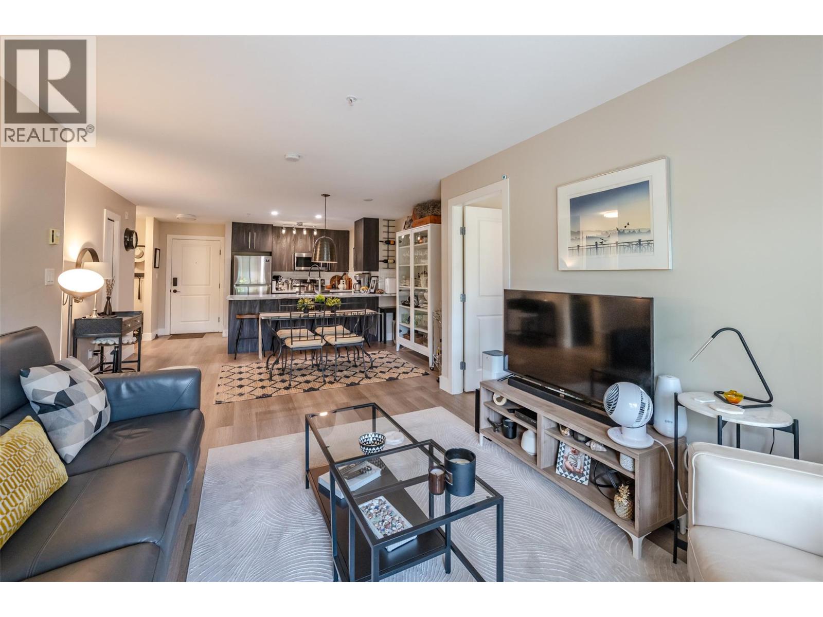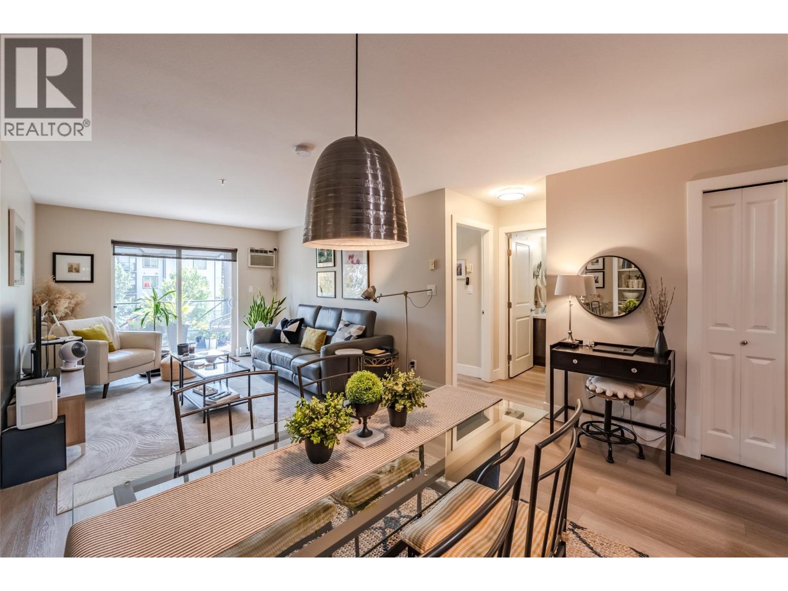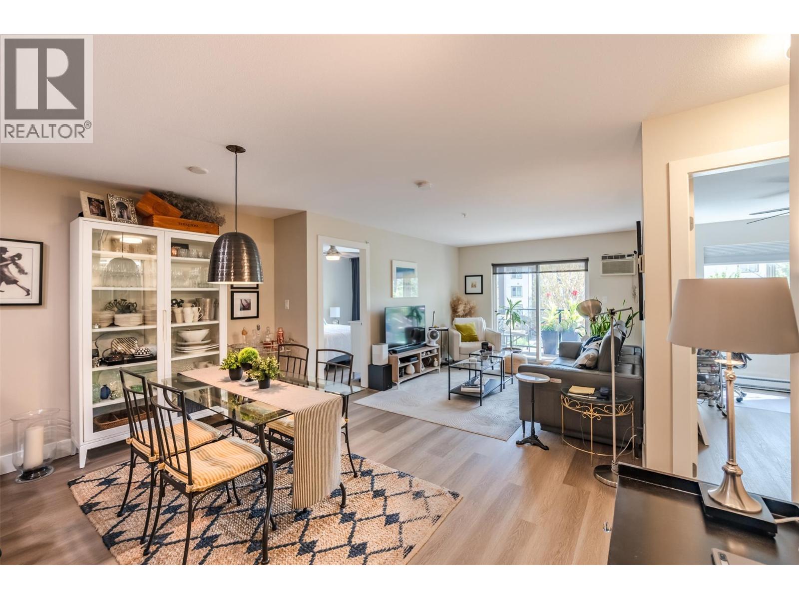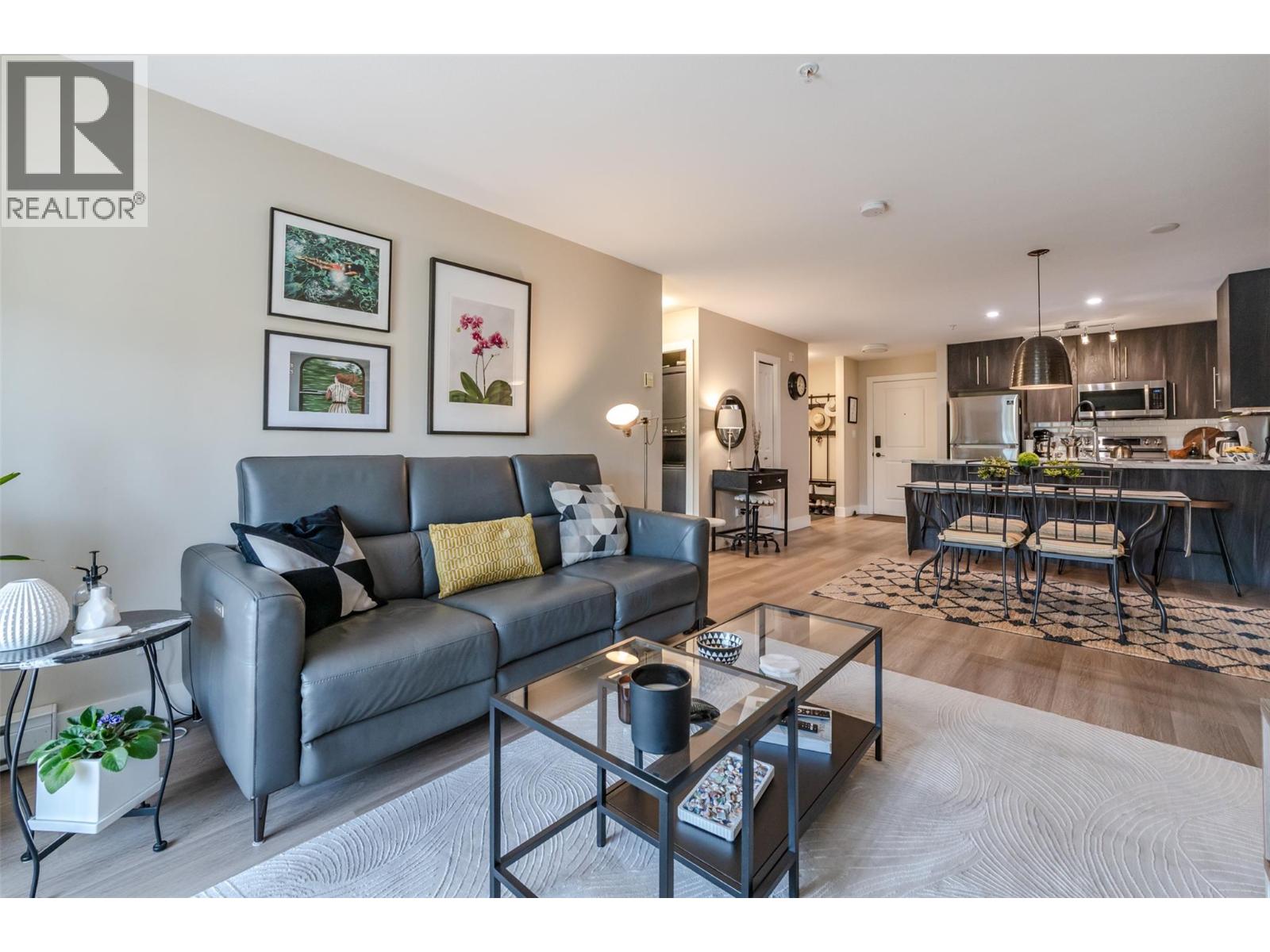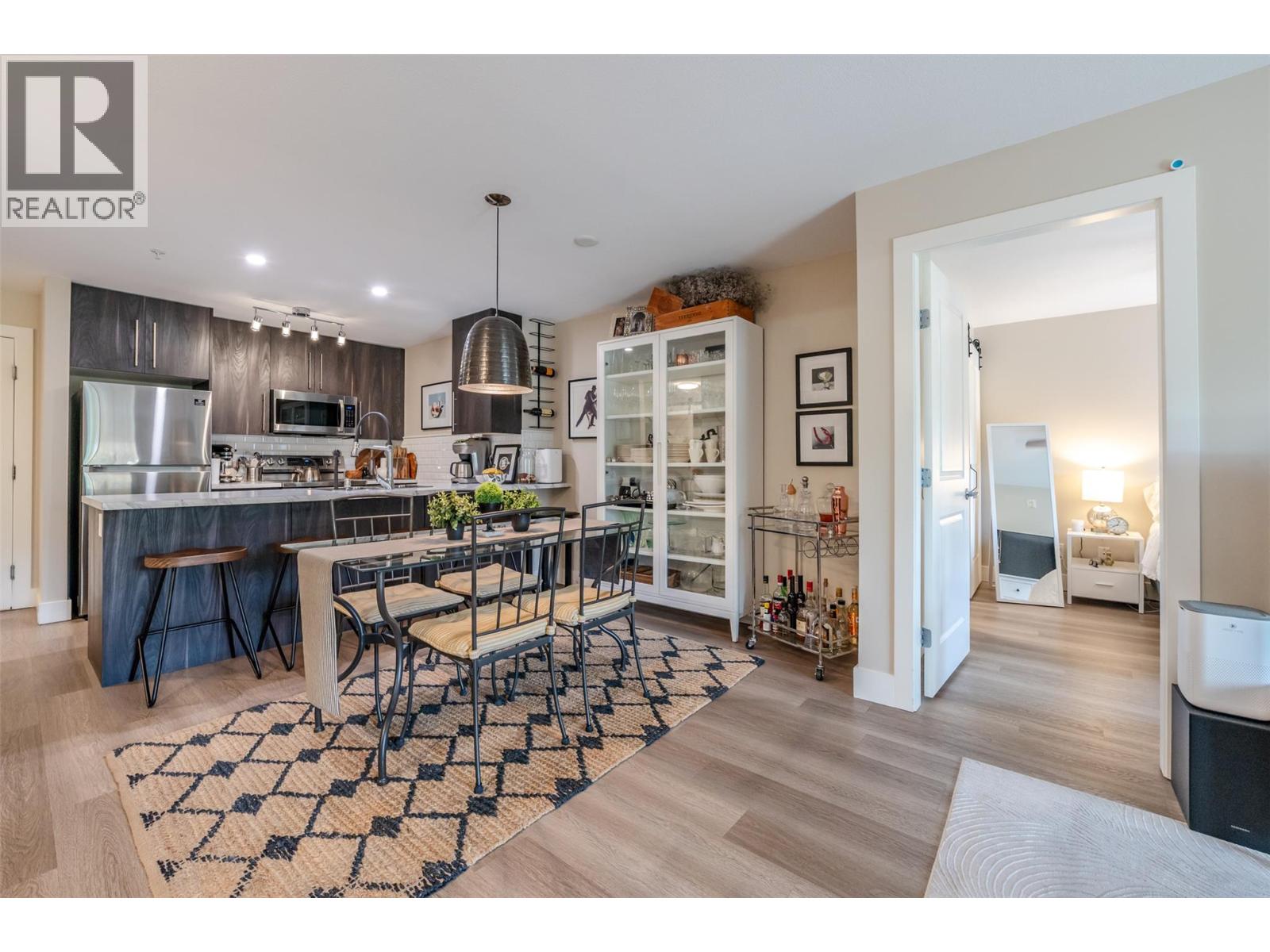 Beautiful and updated 2 Bedroom/2 Bath Condo in the heart of Penticton at The Ellis complex on Hastings Ave. Some of the improvements of this tastefully renovated condo are upgraded kitchen cabinets and countertops with an extended 9ft. peninsula Island that makes entertaining a breeze with a 10” overhang for up to 4 bar stools. There is an extensive use of white beveled subway tiles for a designer touch. The attractive open concept kitchen comes with quality stainless appliances including a stove with convection oven, dual zone fridge, high end DW and microwave with LED lighting throughout. The open concept dining area has room for a table and 6 chairs and a display cabinet. Quality vinyl plank flooring throughout and a custom Benjamin Moore paint color gives this unit a high-end look with a neutral palette for all your decorating choices. The Master Bedroom has a barn door that leads to an upgraded walk-through closet and ensuite with extensive upgrades such as the cabinet/countertop/backsplash. The front entrance has a sizeable closet with a 4’ x 8’ storage/pantry behind a 2nd barn door. This property boasts a beautiful, covered deck with upgraded vinyl flooring facing east to enjoy the morning sunrise and provides shade in the hot afternoon summers. Close to shopping, entertainment, restaurants, and only a few minute's drive to the beach. There is a secure heated parkade with one assigned stall and a 2nd underground stall included and prepaid for a year if closing is completed by Oct. 31st 2025. Strata fees are a low $382 per month and includes hot water. Pets allowed (2 cats). The Ellis at Kettle Valley has no age restrictions with rentals opportunities for the investor. (id:4069)