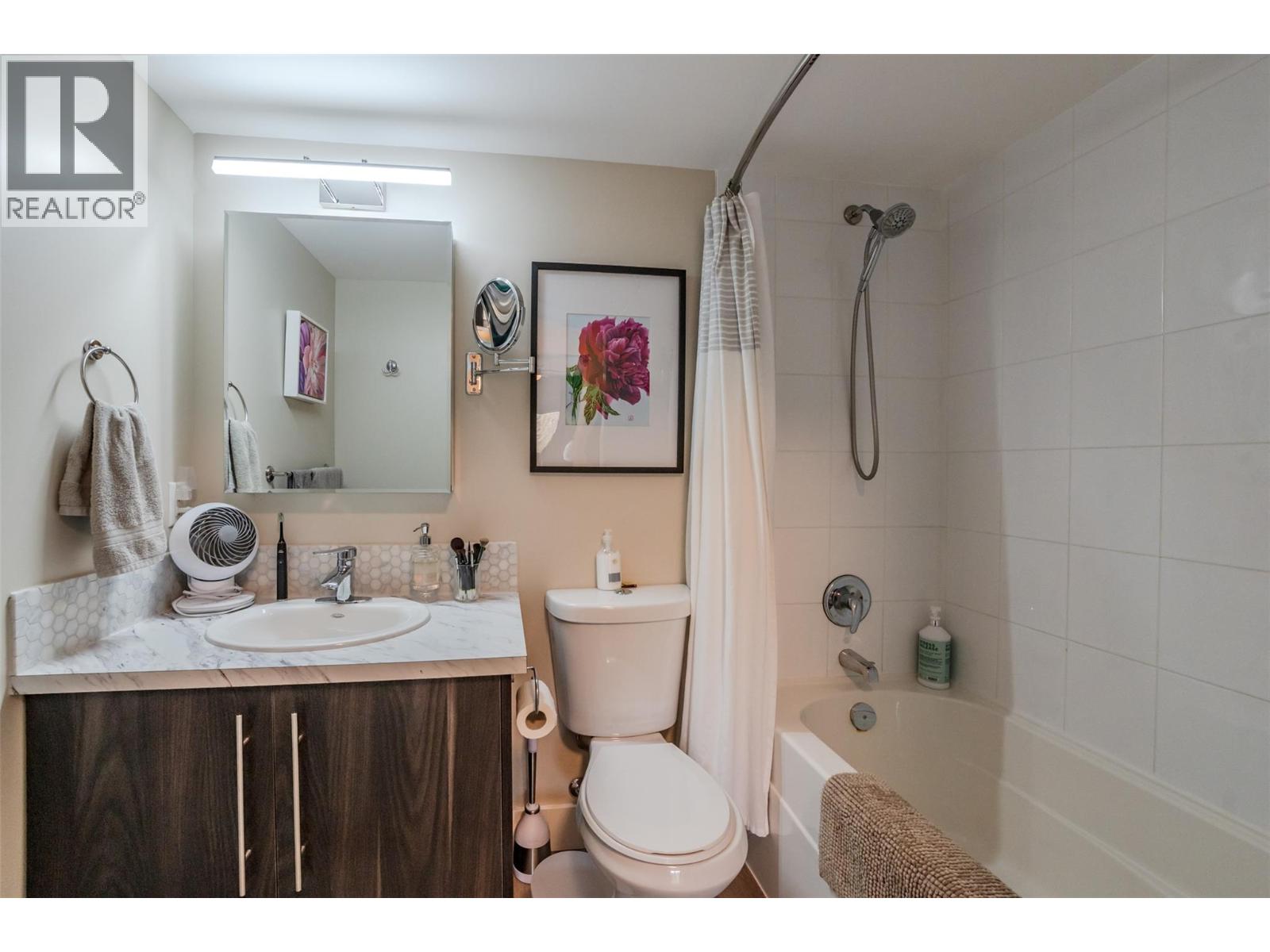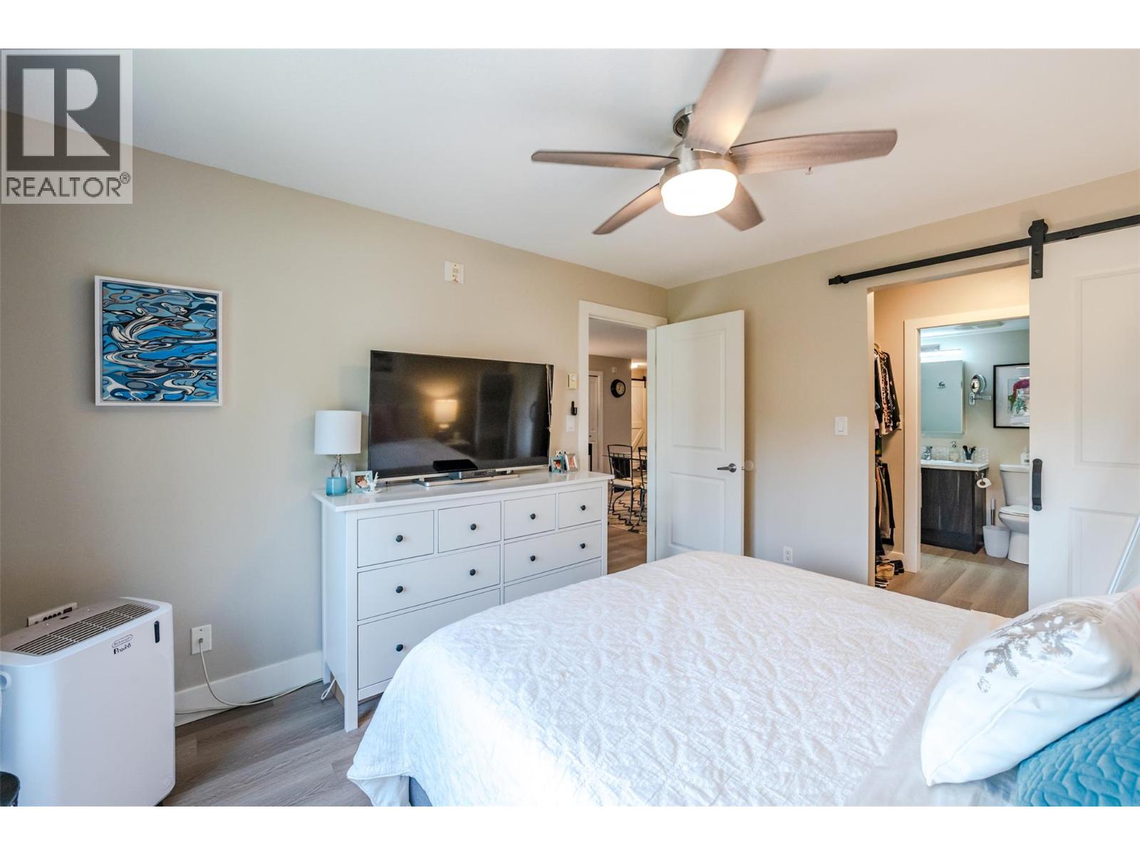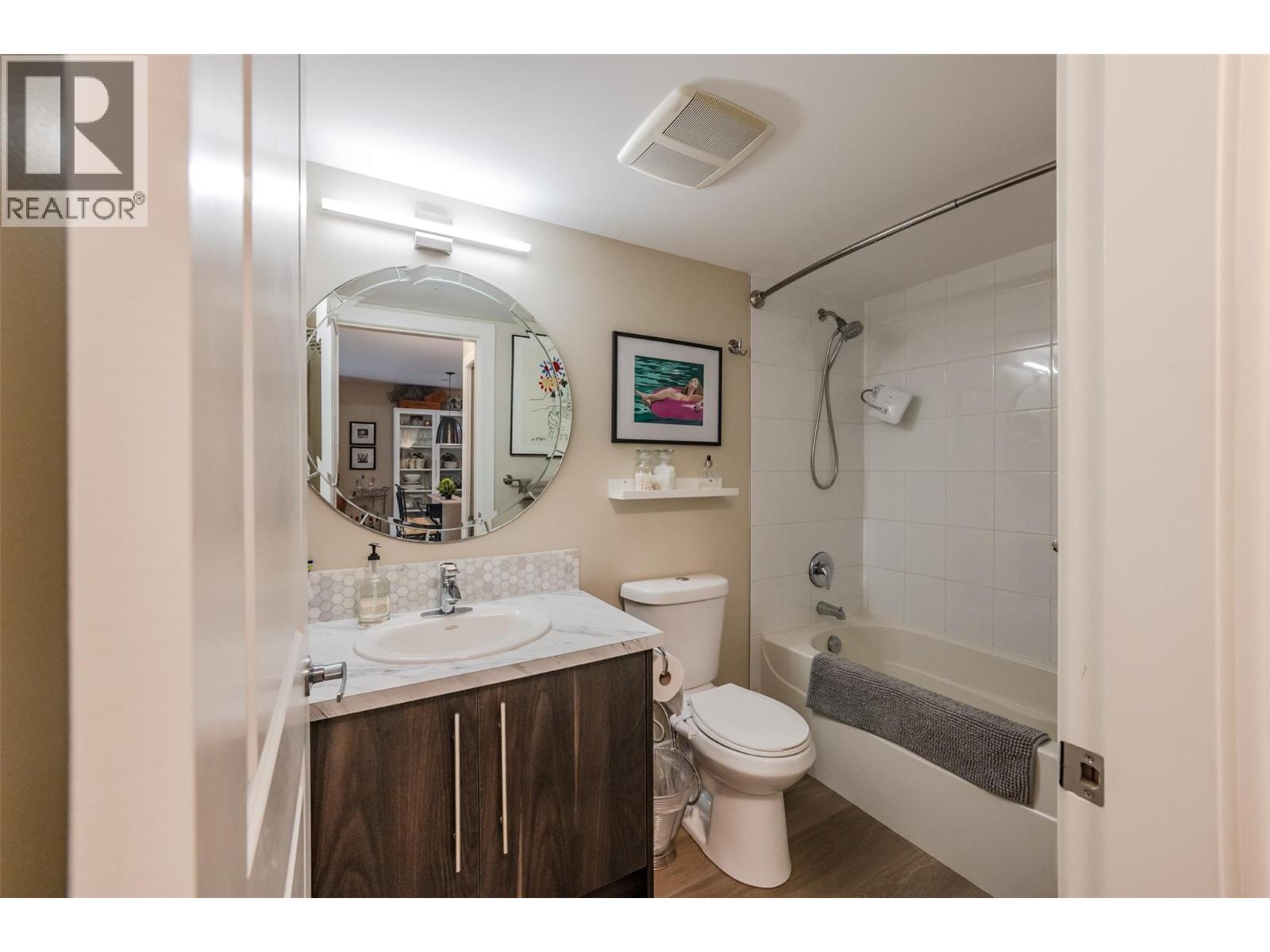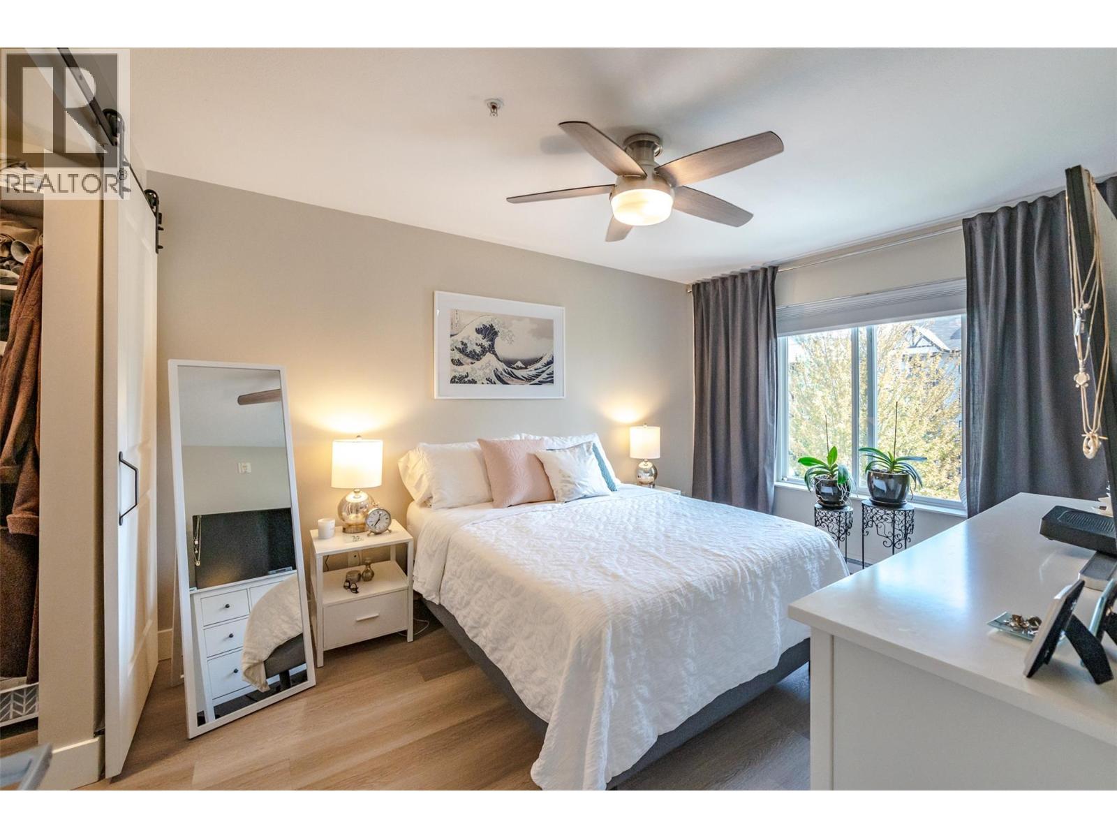 Beautiful and updated 2 Bedroom/2 Bath Condo in the heart of Penticton at The Ellis complex on Hastings Ave. Some of the improvements of this tastefully renovated condo are upgraded kitchen cabinets and countertops with an extended 9ft. peninsula Island that makes entertaining a breeze with a 10” overhang for up to 4 bar stools. There is an extensive use of white beveled subway tiles for a designer touch. The attractive open concept kitchen comes with quality stainless appliances including a stove with convection oven, dual zone fridge, high end DW and microwave with LED lighting throughout. The open concept dining area has room for a table and 6 chairs and a display cabinet. Quality vinyl plank flooring throughout and a custom Benjamin Moore paint color gives this unit a high-end look with a neutral palette for all your decorating choices. The Master Bedroom has a barn door that leads to an upgraded walk-through closet and ensuite with extensive upgrades such as the cabinet/countertop/backsplash. The front entrance has a sizeable closet with a 4’ x 8’ storage/pantry behind a 2nd barn door. This property boasts a beautiful, covered deck with upgraded vinyl flooring facing east to enjoy the morning sunrise and provides shade in the hot afternoon summers. Close to shopping, entertainment, restaurants, and only a few minute's drive to the beach. There is a secure heated parkade with one assigned stall and a 2nd underground stall included and prepaid for a year if closing is completed by Oct. 31st 2025. Strata fees are a low $382 per month and includes hot water. Pets allowed (2 cats). The Ellis at Kettle Valley has no age restrictions with rentals opportunities for the investor. (id:4069)